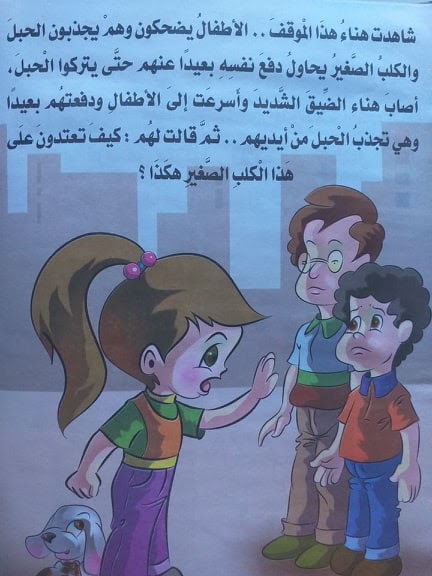 اصاب هناء الضيق الشديد واسرعت الى الاطفال ودفعتهم بعيدا وهي تجذب الحبل من ايديهم ثم قالت لهم : كيف تعتدون على هذا الكلب الصغير هكذا ؟؟