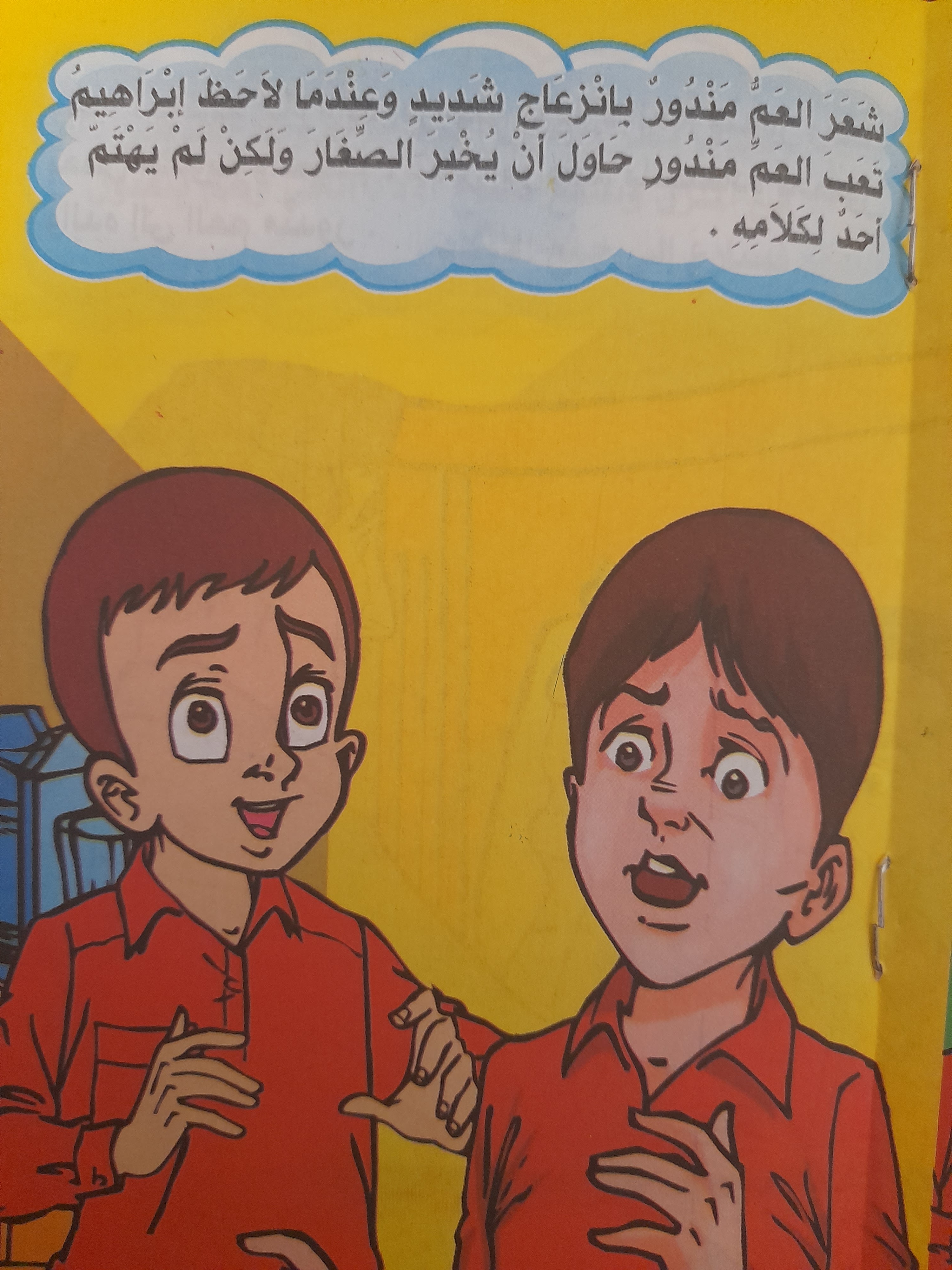 وعندما نظر والد ابراهيم حوله وجد الفوضى تدب في المنزل وسمع صياح اولاد الحي وهم يلعبون فسارع الى جمع الاولاد